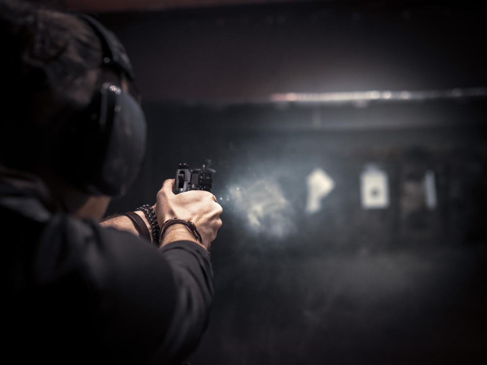 Teste armas curtas, longas e automáticas em estandes modernos e climatizados.